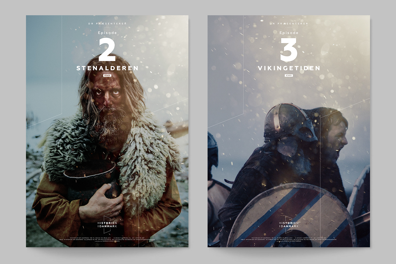 Logo og off-screen design til Historien om Danmark – en dokumentarserie om Danmarks historie fra istid til nutid.